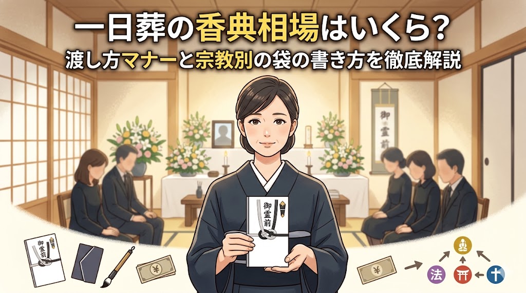一日葬の香典相場はいくら?渡し方マナーと宗教別の袋の書き方を徹底解説