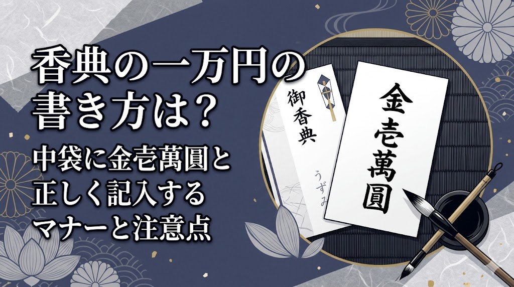 香典で一万円を包む際は、中袋の表面中央に縦書きで金 壱萬圓または金 壱萬円と、大字(旧字体)を用いて丁寧に記入するのが正しいマナーです。