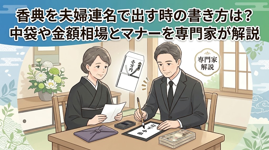 しかし、いざ書こうとすると、名前の配置やバランス、中袋の書き方など、細かいルールが分からず不安になることもあるでしょう。この記事では、終活アドバイザーの視点から、夫婦連名で香典を出す際の正しい書き方や金額相場、袱紗の扱いまで、失礼のないマナーを網羅して解説します。