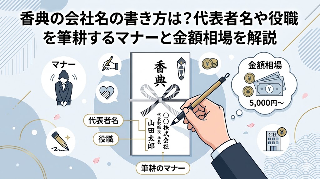 香典の会社名の書き方は?代表者名や役職を筆耕するマナーと金額相場を解説